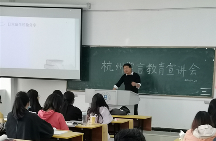 为开展好2021届毕业生就业服务,拓宽日语专业毕业生就业渠道,加强学生专业能力提升,10月20日上午,外国语学院邀请了杭州学言文化创意有限公司日语教学总监贾柱以“日语专业学生就业前景分析”为题做了讲座。