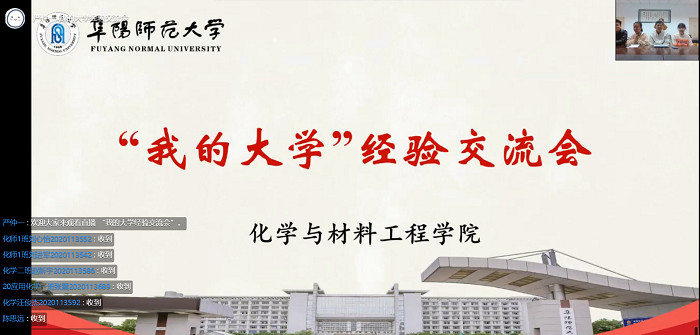 为帮助2020级新生尽快适应大学生活,明确学习目标,坚定专业信心,合理规划大学生活,10月25日,化学与材料工程学院在网上举办以“举引航之灯,照成才之路”为主题的线上经验交流会。2020级全体新生参与本次交流会。