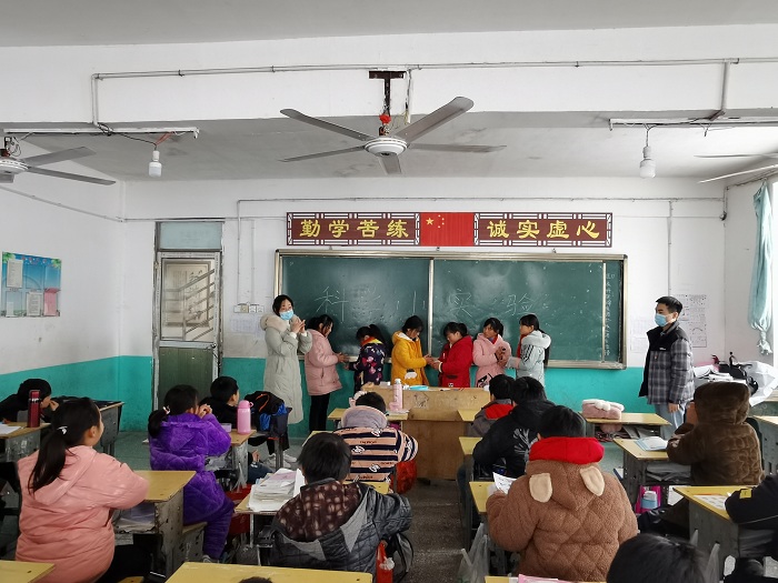 在五年级1班,党支部开展了科学小实验、疾病预防和冬季保暖宣讲、安全教育宣讲、素质拓展活动、读书分享会等活动。科学小实验活动环节,支部党员带领同学们做了“掉不了的硬币”“立不起来的脚尖”的小实验,让同学们感受到生活中处处有科学,启发同学们发现、挖掘生活中的科学知识,积极引导同学们主动探索,增长本领。随后,郭雨洁进行了疾病预防、冬季保暖和安全教育宣讲。通过学习,同学们知道了怎样预防常见疾病、怎样进行冬季的科学保暖以及突遇火灾时怎么进行安全逃生,保护自己。素质拓展活动环节,支部党员和五年级1班的同学们开展了“同舟共济夹气球”和“奇数偶数”等活动,考验同学们的默契程度,培养同学们的团队合作意识。读书分享会环节,学生们进行了《金属国的小王子》读后分享,期望通过活动的开展让更多的学生爱上读书,养成良好的读书习惯,不断从书中得到智慧启发。最后党员们为班级学生赠送了文具,并对活动获奖的同学进行了奖励。五年级1班的同学们对支部党员的到来表示热烈的欢迎并期盼下一次活动的开展。