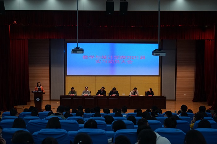 为了确保实习工作顺利开展,引导毕业生将专业技能运用到实际工作中,做好步入工作岗位的准备,11月2日下午,数学与统计学院在正行楼多功能报告厅召开2021届学生实习动员大会。院长盛兴平、党委副书记吴尝、副院长王志刚、各专业负责人、毕业班辅导员、部分实习指导老师及全体毕业生参加了动员大会。大会由王志刚主持。