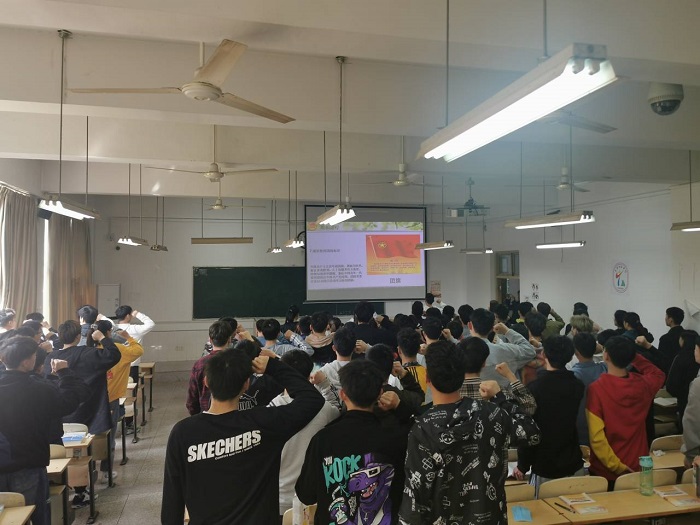 鲁恩慧用生动的语言、充沛的感情,向大家展示了团的历史、发展团员和团员管理、班级团支部建设和团支部活动开展,并结合所在班级的团支部建设,讲述了班级团学活动如何开展、怎样建设,通过活动帮助同学坚定理想信念,理清未来发展思路,并带领团员重温入团誓词。
