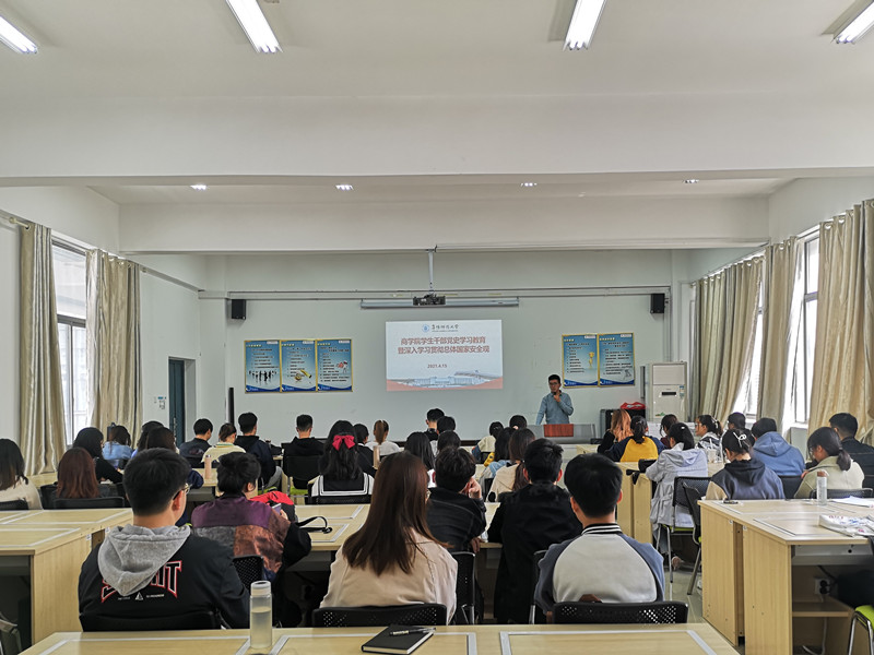 商学院充分利用全体教职工例会,深入学习习近平总书记关于总体国家安全观的重要论述,明确总体国家安全观的形成背景、国家总体安全的工作体系和如何树牢总体国家安全观。分团委积极通过院官方微信公众号推送《国家安全法》《反间谍法》《反恐怖主义法》《传染病防治法》《野生动物保护法》等专题教育内容,并组织学生干部在线观看了新中国成立初期以反间谍案为题材的纪录片《国家记忆之炮击“天安门”案》,引导广大青年学生时刻牢记要树立正确的国家安全观。各系教师党支部结合新一轮“三个以案”警示教育,用危害国家安全而受到法律制裁的一些反面典型案例,强调了增强风险防范意识的重要性。各年级辅导员分别围绕校园安全、网络安全、心理安全等内容集中召开主题班会,确保总体国家安全观教育贯穿于学生日常学习生活当中。