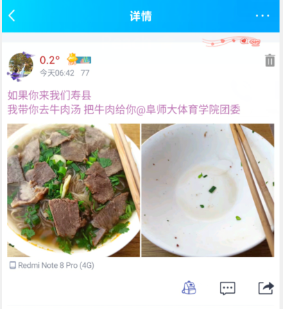 体育学院学生进行“光盘行动”的打卡拍照。尊重劳动、珍惜粮食,厉行节约、文明用餐,让勤俭节约的美德在新时代获得生机。5月1日从早上开始,学院党员、入党积极分子带头示范,以实际行动倡导并带动身边的同学一起加入“光盘行动”,同学们纷纷拿出手机参与光盘行动,晒出了自己的光盘宣言,也晒出了自己实实在在践行者“光盘”行动。体育学院学生许涌阅表示:“我们应当时刻牢记珍惜粮食,积极做到‘光盘行动’,吃多少就打多少。”也有一些同学参与“五一”劳动的氛围中,感受劳动美。