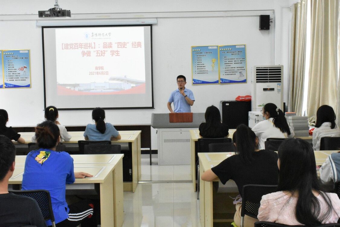 首届“品读‘四史’经典,争做‘五好’学生”活动将从6月份一直持续到9月份,紧扣党史学习教育这一主旨,以经典阅读引领广大学生深入了解建党百年以来我国社会经济发展的巨大变化和辉煌成就,深刻认识中国共产党带领全国各族人民一步步从站起来到富起来再到强起来的光辉历程和丰功伟绩。活动安排10名老师全程指导,计划在历时4个月的过程中,引导全院学生全员参与到阅读一本好书、开展一次演讲、聆听一次讲座、完成一篇学习报告、进行一次成果展示的“五个一”环节中,促进学生不断增强和提升思辨能力,更好地弘扬和传承社会责任,践行知行合一的时代使命。
