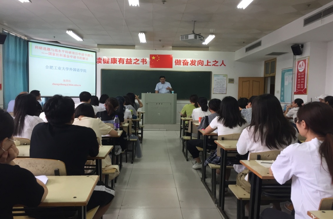 为进一步推动“我为师生办实事”实践活动深入开展,6月18日上午,外国语学院聚焦师生申报高水平科研项目上存在的困惑与需求,邀请合肥工业大学外国语学院院长张四红教授为全体教师作“科研选题与高水平科研项目申请书撰写——国家社科基金申请书的解读”专题报告。报告会由外国语学院院长赵从义主持,学院全体教师、部分本科和研究生聆听了报告。