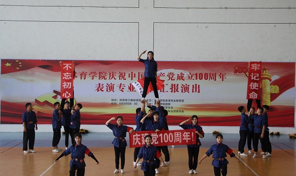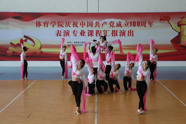 6月30日上午,体育学院在西湖校区体育馆三楼举办庆祝中国共产党成立100周年表演专业课程考试暨汇报演出。体育学院党委书记于少华、副书记石有武、副院长杨中皖,表演系系主任王丽观看了演出。表演系全体教师和300多名学生参加了汇演。