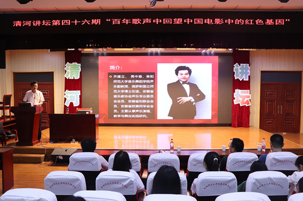 为扎实推进党史学习教育,深入学习红色文化,回顾革命先辈探寻革命道路的峥嵘岁月。信息工程学院于6月29日下午在清河校区主楼学术报告厅举行第四十六期“清河讲坛”活动。此次讲座邀请了音乐舞蹈学院声乐老师齐建立副教授做题为“百年歌声:回望中国电影中的红色基因”的讲座。讲座由该院院长郝文清主持。
