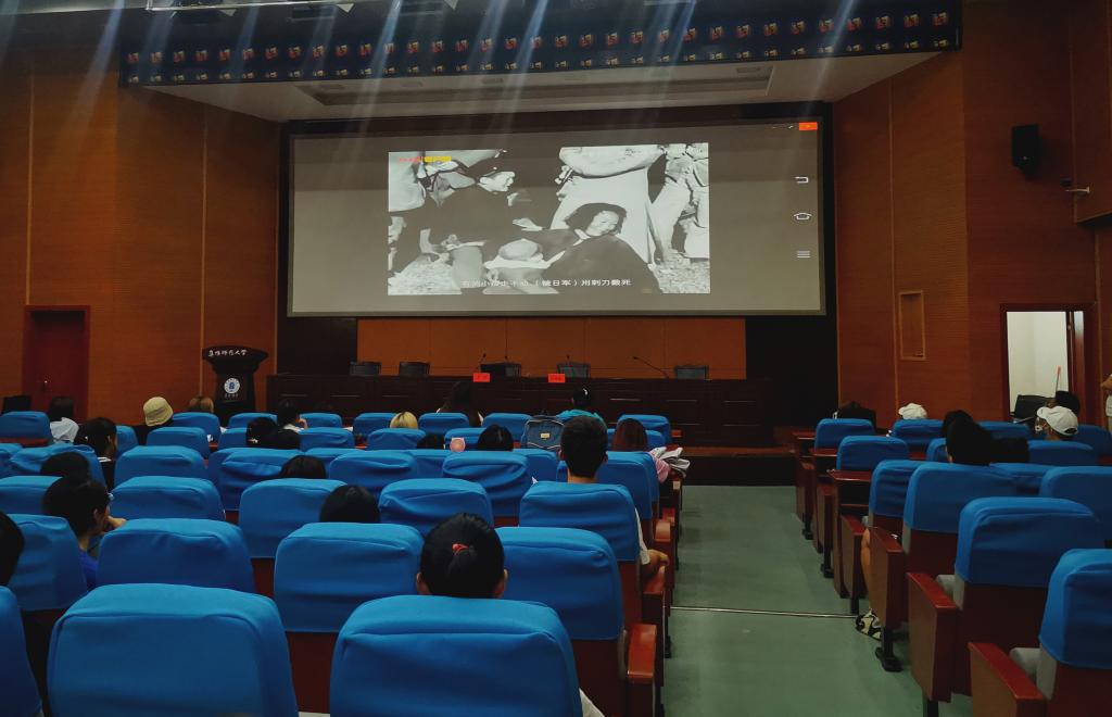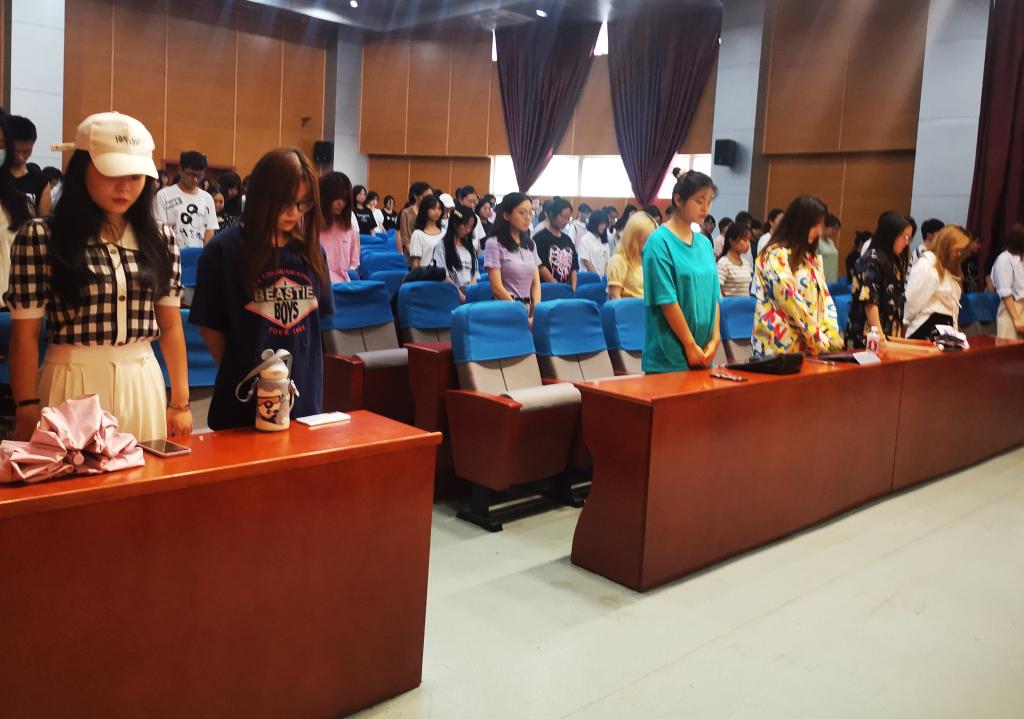 活动现场庄严肃穆。与会师生脱帽肃立,集体默哀,缅怀抗日战争中饱受苦难的同胞,表达对逝去同胞的哀思。与会人员集体观看了“九一八”事变纪录片。视频通过一段段历史资料的呈现,一幅幅残垣断壁、国弱被辱的真实场景的还原,再现了那段中华儿女万众一心,同仇敌忾,不怕流血牺牲,不畏艰难险阻,与日本侵略者进行了英勇斗争和浴血奋战,终于取得伟大胜利的苦难岁月,激发广大师生铭记历史,勿忘国耻,勤奋学习,报效祖国的爱国热情和历史担当。