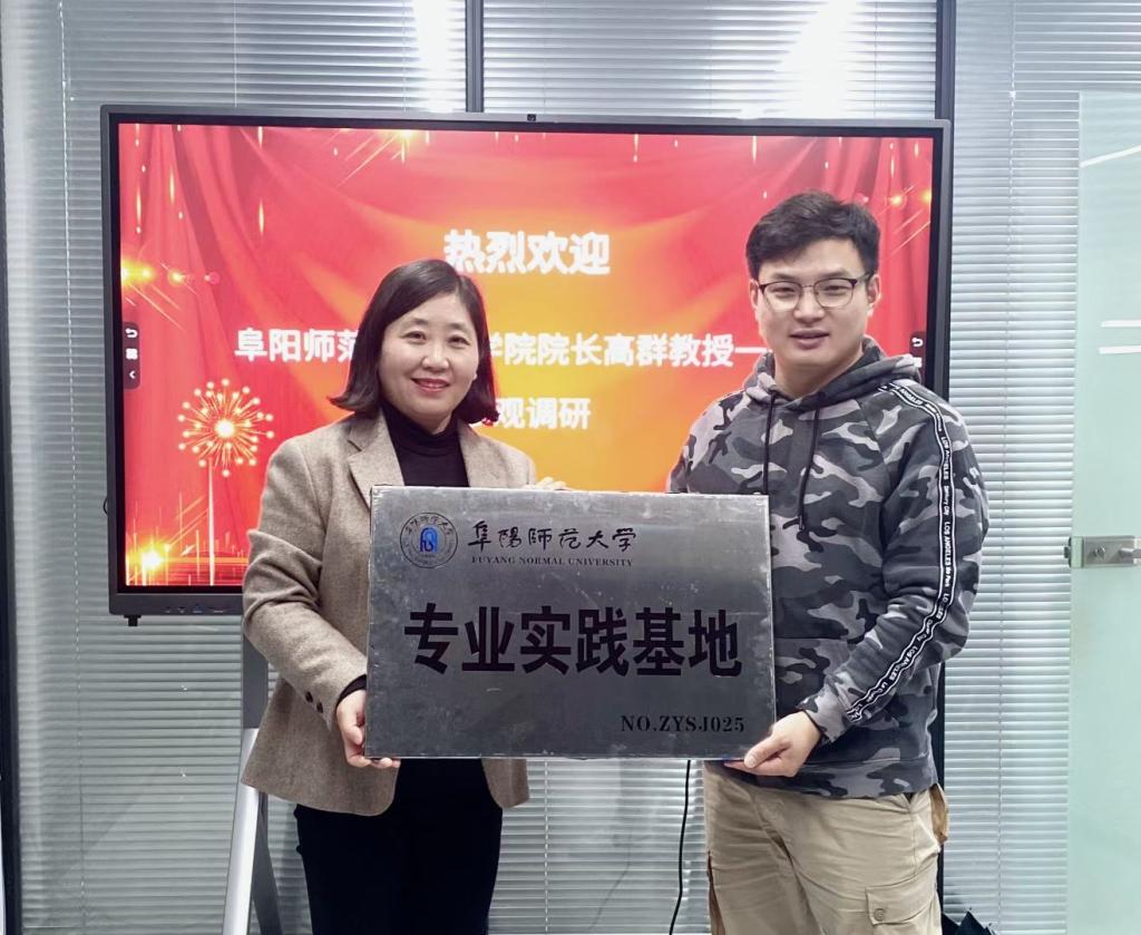 文学院与安徽热气球文化传媒有限公司签约仪式结束后,另一专业实践基地签约仪式紧接而来,下午2点,我校文学院与安徽肥肥网络传媒有限公司正式签约,建立校企合作实习基地。高群院长、肥肥网络公司总经理周强、网络与新媒体专业负责人吴丹及19级新闻1班全体同学参观肥肥网络公司并进行签约仪式。