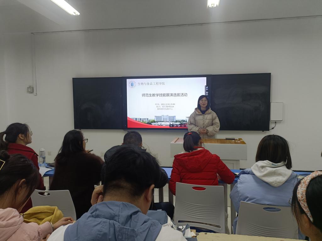 为进一步深化“七进”成果,着力解决实际问题,围绕师范生夯实教学基本功、强化教学技能、加强实践交流等诉求,生物与食品工程学院依托教师教育发展中心创办“师范生教学技能周展演”活动,营造以赛促练、以练促学、以学提能的良好氛围和交流平台,不断提高教师教育人才培养质量。近期,活动启动仪式暨展演选拔赛如期举行,杜召凤、曹小汉等教师及柳珍秀、胡涵、赵敏等优秀师范生担任评委。