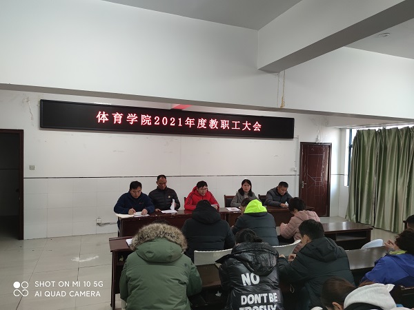 12月22日下午,体育学院在体育馆4楼会议室召开2021年二级教代会暨教职工大会。体育学院全体教职工参加会议,会议由体育学院党委书记于少华主持。