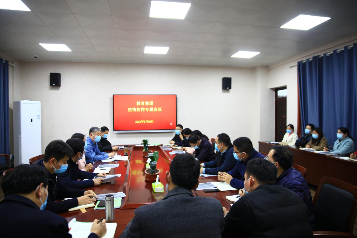 3月30日下午,结合当前疫情防控形势,教育集团再次召开专题会议,传达学习校党委疫情防控会议精神和工作要求,进一步研究部署疫情防控工作。教育集团党政领导班子、各科室及附小附幼相关负责人、附中各年级主任参加会议。会议由教育集团党总支书记王健主持。