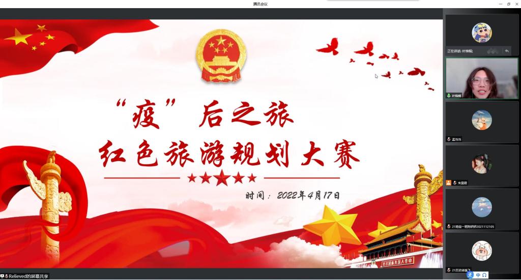 为传承红色精神,用好红色资源,发扬红色传统,学院通过腾讯会议举办“疫”后之旅——红色旅游规划大赛。同学们围绕中共一大会址纪念馆、渡江战役纪念馆、李大钊故居等多个红色旅游景点精心设计别具特色的旅游线路,讲述红色故事,传承红色基因。通过将党史学习教育与红色旅游线路设计相结合的方式,让专业学习与党史学习教育同向同行、同频共振。