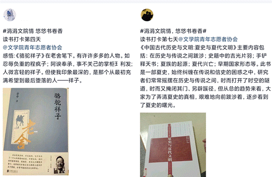 学问勤中得,萤窗万卷书。此次线上读书打卡活动进一步提高了文学院学生的文化素养,丰富了疫情防控期间学生的精神生活,开拓了学生的知识视野。