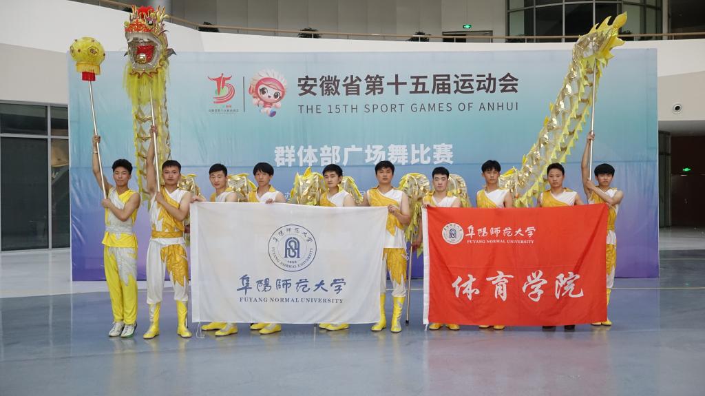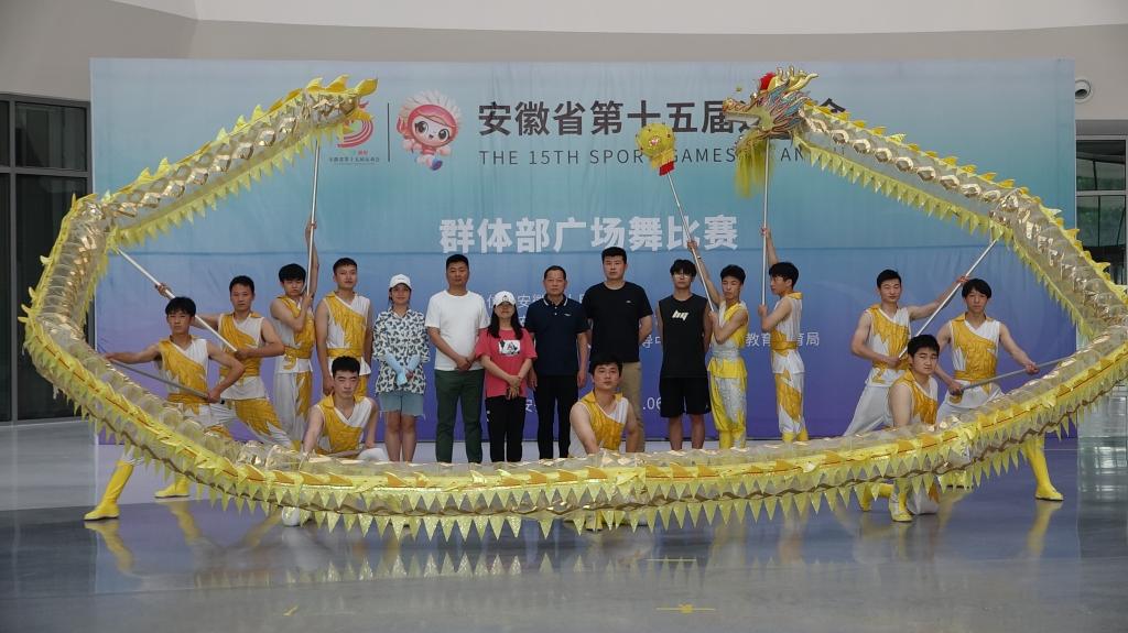 “皖美省运,亭好滁州”,6月23日-24日,安徽省第十五届运动会群体部广场舞比赛在安徽滁州冠景泊悦酒店会议中心举行。本次比赛共有来自16个地市37个代表队参加广场龙舞、健身舞、健身秧歌比赛,报名人数达600余名,由刘婉婉老师带领的体育学院龙狮队共14名队员代表阜阳市参加了广场龙舞自选套路项目的比赛。