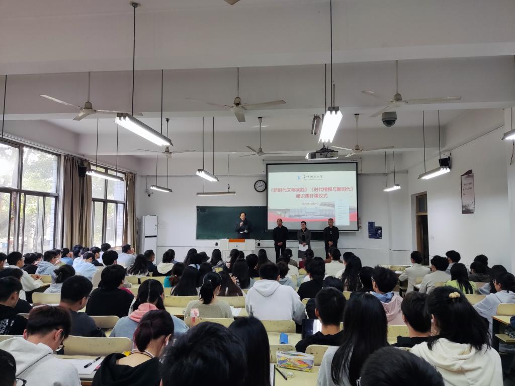 10月29日,《新时代文明实践》《时代楷模与新时代》通识课开课仪式在阜阳市新时代文明实践学院举行。阜阳市委宣传部副部长燕少红,阜阳市文明办副主任张燕,“时代楷模”、马克思主义学院党委书记高思杰,马克思主义学院副院长朱宗友等与学校700多名大学生一起走进课堂,聆听了两门通识课课程。