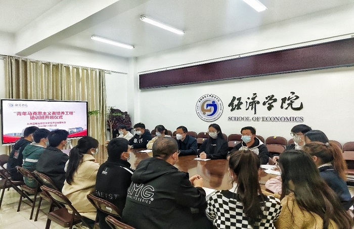为深入学习贯彻习近平总书记关于青年工作的重要思想,加强共青团政治思想引领作用,培养学生骨干成长为具有坚定的马克思主义信仰、德才兼备全面发展的中国特色社会主义事业的合格建设者和可靠接班人,11月23日下午,经济学院两校区通过线上线下相结合的方式举办“青马工程”培训班开班仪式。经济学院党委副书记孟继超、团委负责人关欣雨出席开班仪式,72名学员参加开班仪式。