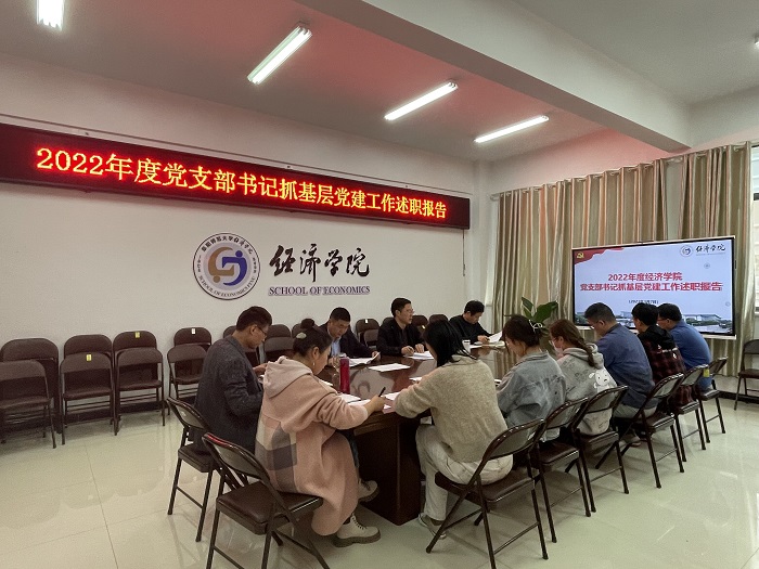 3月7日下午,经济学院召开2022年度党支部书记抓党建述职评议会。经济学院党委委员、党支部书记、师生党员代表参加会议,会议由学院党委书记房厚信主持。