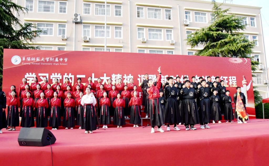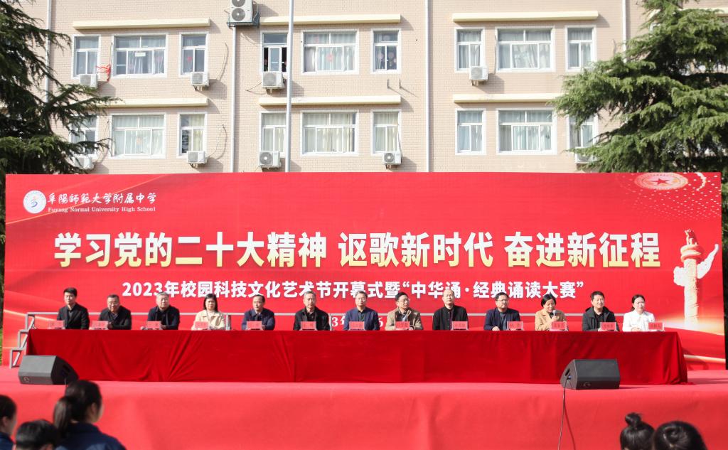 为深入学习宣传贯彻党的二十大精神,加强对学生的思想引领和成长教育,丰富校园文化生活,4月6日下午,附属中学“学习党的二十大精神,讴歌新时代,奋进新征程”2023年校园科技文化艺术节开幕式暨“清音婉转诵华章,抑扬顿挫传佳韵”中华诵·经典诵读大赛隆重举行。阜阳市科学技术协会、阜阳市教育局教科所、阜阳师范大学相关职能部门、教育集团领导莅临开幕式。附中毕业班老师应邀担任经典诵读评委。