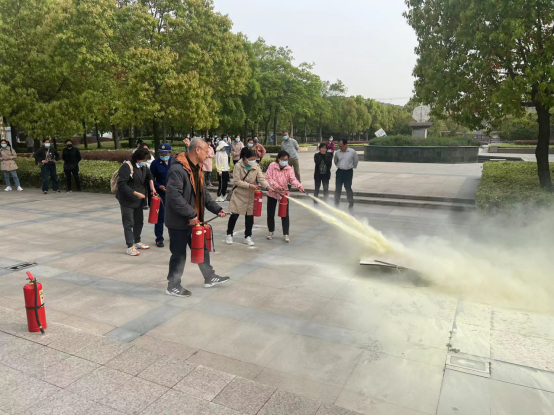 牛凤银带领全体馆员学习了消防“四懂三会”、消防安全“四个能力”建设等应知应会的内容。结合具体案例以及图书馆消防安全工作特点为馆员讲解了火灾的危害性、常见火灾风险点、火灾预防及火灾发生后如何第一时间进行应急处置,包括报警、灭火、疏散与自救等。在牛凤银指导下,所有参会人员在逸夫图书馆前广场参加了如何使用灭火器和现场灭火的演练。
