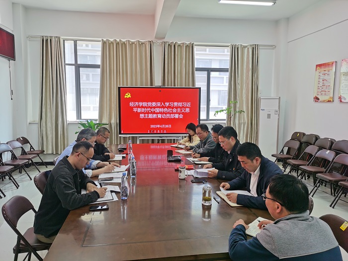 4月26日,经济学院党委召开学习贯彻习近平新时代中国特色社会主义思想主题教育动员部署会。党委巡察工作办公室主任李兵帅出席指导。学院党政班子成员、党委委员、党支部书记、科级干部、辅导员参加会议。会议由学院党委书记房厚信主持。