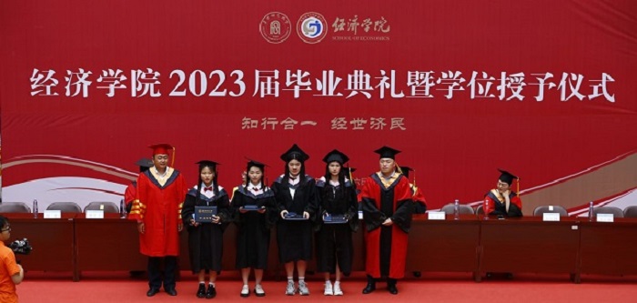 5月16日下午,经济学院2023届毕业典礼暨学位授予仪式于西湖校区汉风B楼隆重举行。经济学院党委书记房厚信、副院长余许友、党委副书记孟继超、全体辅导员、教师代表与2023届毕业生共同出席本次典礼。