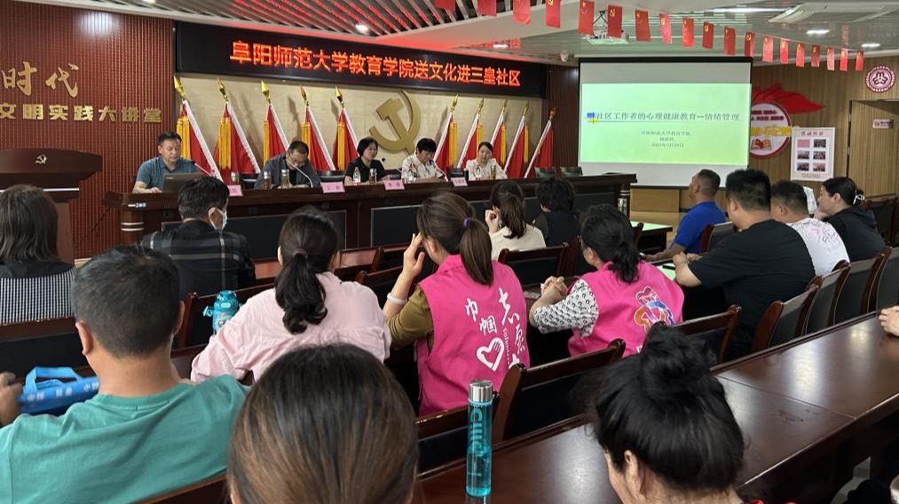 应社区负责同志要求,心理学与教育技术学教工党支部书记杨虎民作了《社区工作者的心理健康教育—情绪管理》知识讲座。他从多个角度、不同层面做了关于情绪的阐述和讲解,并通过生活案例,深入浅出地讲解了不良情绪与健康的关系、情绪控制与消除的应对策略等,帮助社区工作人员缓解工作和生活压力,营造积极向上的工作氛围。