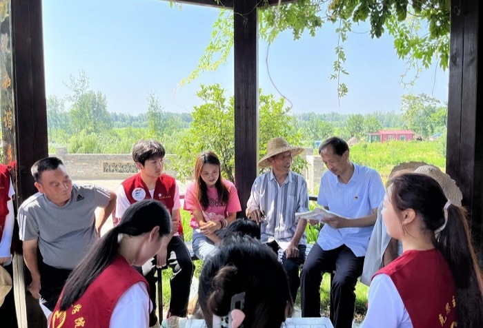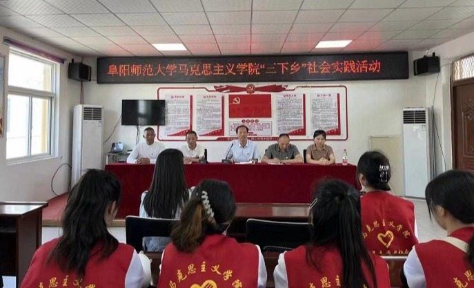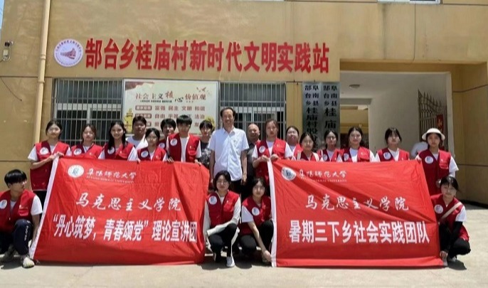 “理论是实践的眼睛,实践是思想的真理。”为深入学习宣传贯彻习近平新时代中国特色社会主义思想,全面贯彻落实党的二十大精神,推动思政课小课堂与社会大课堂相结合。马克思主义学院组建了两支暑期“三下乡”社会实践活动团队,由学院本科生18人组建的“丹心筑梦,青春颂党”理论宣讲团于6月27日赴阜南县郜台乡桂庙村开展暑期“三下乡”社会实践活动。时代楷模、全国优秀共产党员、学院党委书记高思杰,学生党支部书记李涛,团总支负责人宁焱等一行带队指导“三下乡”活动。