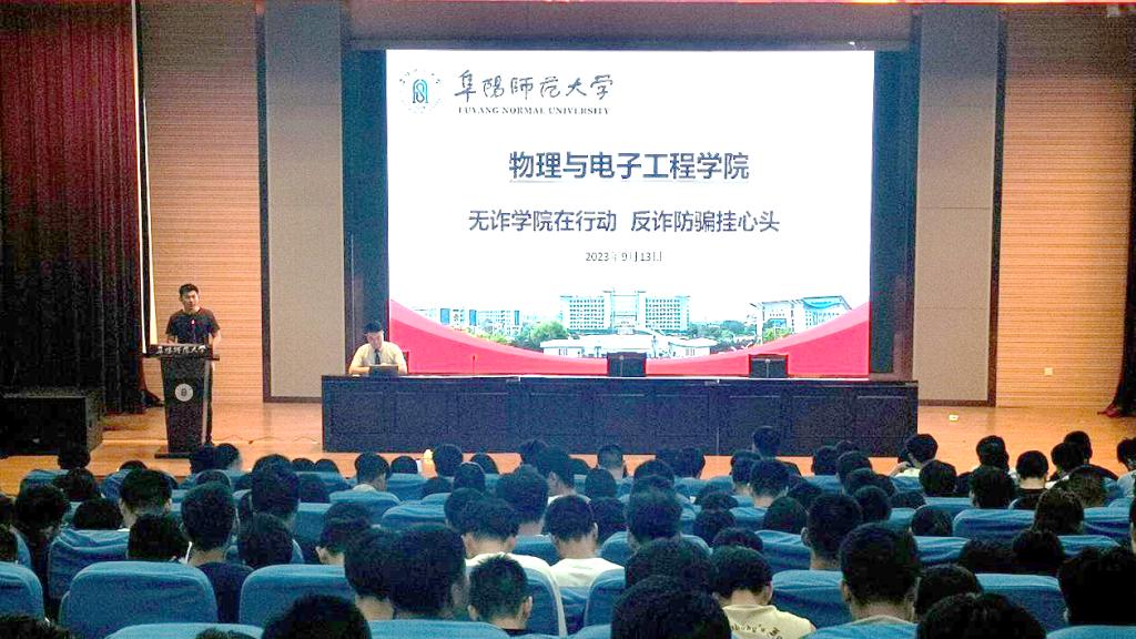 为使同学们了解生活中常见的诈骗形式,增强在生活中的防范意识和遇到诈骗时应对自我保护能力,9月13日晚,物理与电子工程学院邀阜阳颍泉农村商业银行“反诈宣传教育基地”工作人员高杨,为学院学生做防诈骗专题教育宣讲。