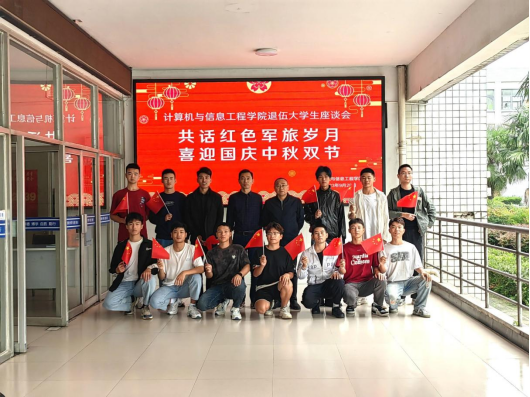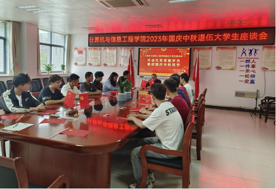 为进一步加强在校退役大学生思想政治引领,发挥退役大学生的先锋模范作用,坚实做好大学生征兵入伍工作。9月27日上午,值此中秋国庆双节之际,计算机与信息工程学院在躬行楼B202召开退伍大学生座谈会。学院党委书记朱明山、党委副书记刘杰出席活动,学院团学负责人、征兵工作负责人、13名退伍大学生和志愿入伍毕业班同学参加会议,座谈会由刘杰主持。