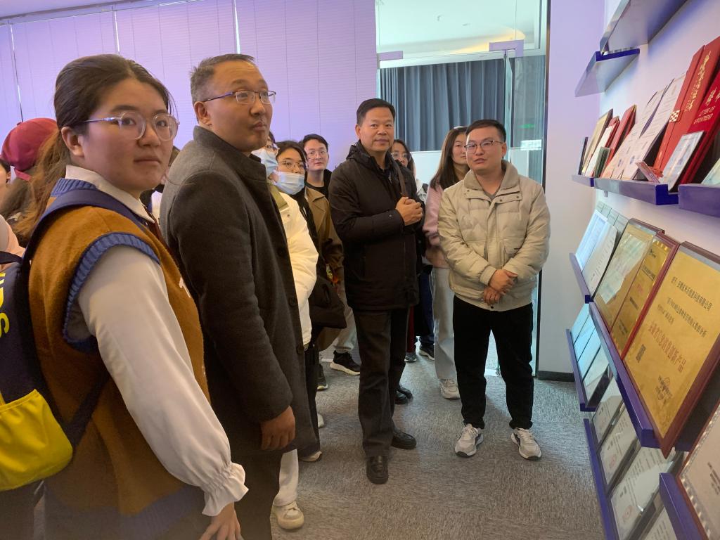 安徽米乐信息科技股份有限公司总经理游亚龙等热情接待参访团队。陪同考察阜合创业园复旦科技园企业成果展,和公司工作环境,介绍公司基本情况、发展历程,分享创业经历和创业感悟,并与参访师生积极交流互动,现场气氛热烈。