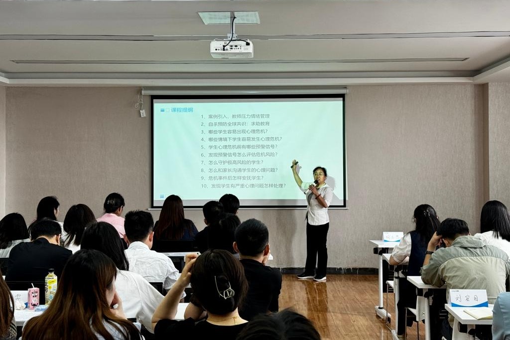 培训讲师围绕当前大学生心理状态特点,就心理危机的识别、监护和干预的各环节进行一一指导,提出“询问、倾听、同理心,科普、评估、找资源”的有效干预工作理念、工作规范和科学方法,为处于危机状态学生的心理伤口“包扎止血”。同时,分析了高校心理健康工作者危机预防与干预工作的误区与应对举措,梳理了工作难点,明晰了危机预防与干预的关键点。培训通过大量真实案例讲解对风险评估以及危机处置给出了具体的方法指导,为参训教师提供了具有可行性和操作性的解决方案。培训讲师还专门就我校大学生日常管理和心理危机预防工作中遇到的问题和困难等,与参会人员进行了交流分享与答疑解惑。