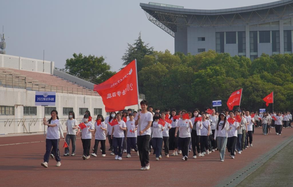 上午8时,伴随着激昂的运动员进行曲,运动会开幕式正式开始,在国旗护卫队庄严地引领下,各班级方阵踏着整齐的步伐,喊着铿锵有力的口号有序入场,充分展示出法学院学子朝气蓬勃的青春力量和逐梦前行的校园风采。