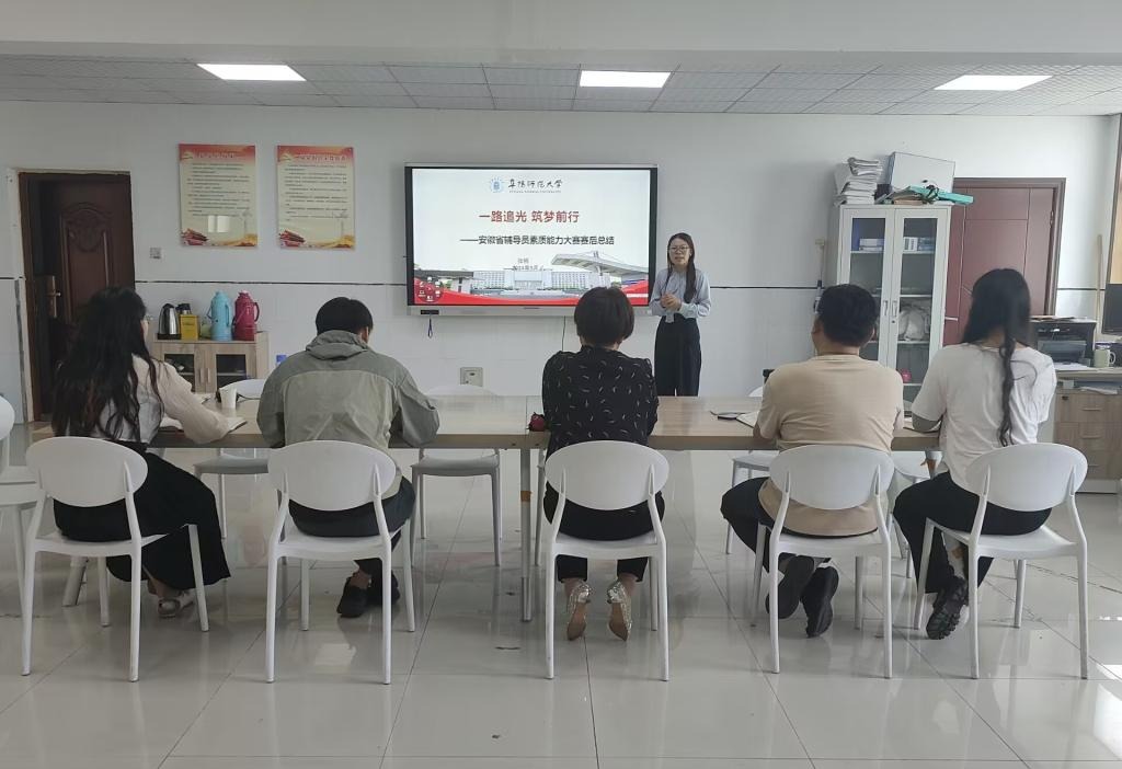 分享会上,安徽省2024年高校辅导员素质能力大赛三等奖获得者、学院专职辅导员张桃,以“一路追光,筑梦前行-安徽省辅导员素质能力大赛赛后分享”为主题,结合自己的参赛经历从“回归大赛、回归日常、回归团队”等方面向辅导员们进行了经验分享,并针对大赛赛程、评分标准、比赛项目等内容进行了详细介绍。同时为大家详细剖析了“案例研讨”、“谈心谈话”环节的比赛技巧和参赛心得。