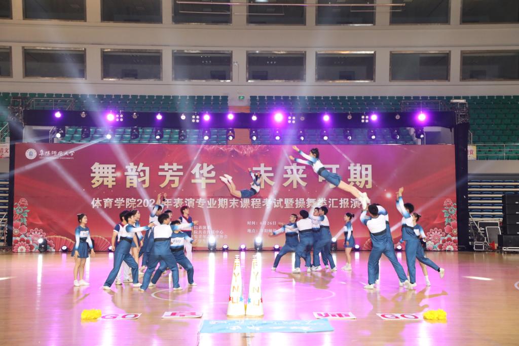6月26日晚,体育学院在阜阳师范大学西湖校区体育中心举办“舞韵芳华,未来可期”2024年表演专业期末课程考试暨操舞类汇报演出。活动由体育学院表演专业承办,体育学院学生会、共青传媒中心、青年志愿者协会协办。