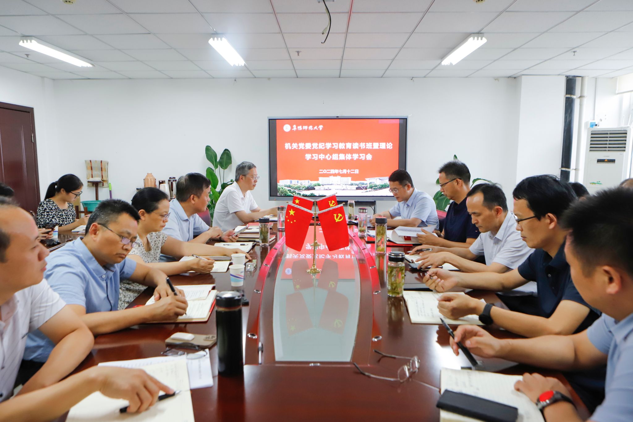 7月12日,机关党委在正行楼1312会议室召开党纪学习教育读书班暨理论学习中心组集体学习会。机关党委书记辛卫民主持会议,机关党委委员、各支部书记参加会议。