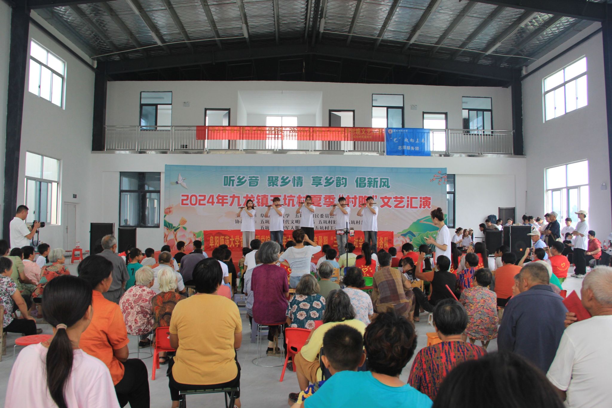 文艺惠民,青春践行。为深入学习贯彻习近平文化思想和习近平总书记关于“三农”工作的重要论述,引导和帮助广大青年深入基层,上好社会实践“大思政课”,7月15日、16日,音乐舞蹈学院“艺”起向未来、青春“艺”行“三下乡”社会实践服务团一行51人分别前往颍州区九龙镇五坑村、颍州区三合镇三星村开展“乡韵·青春·振兴梦”为主题的文化惠民专场演出活动,让艺术之花在基层绽放,以“艺”颗颗热心助力乡村振兴。