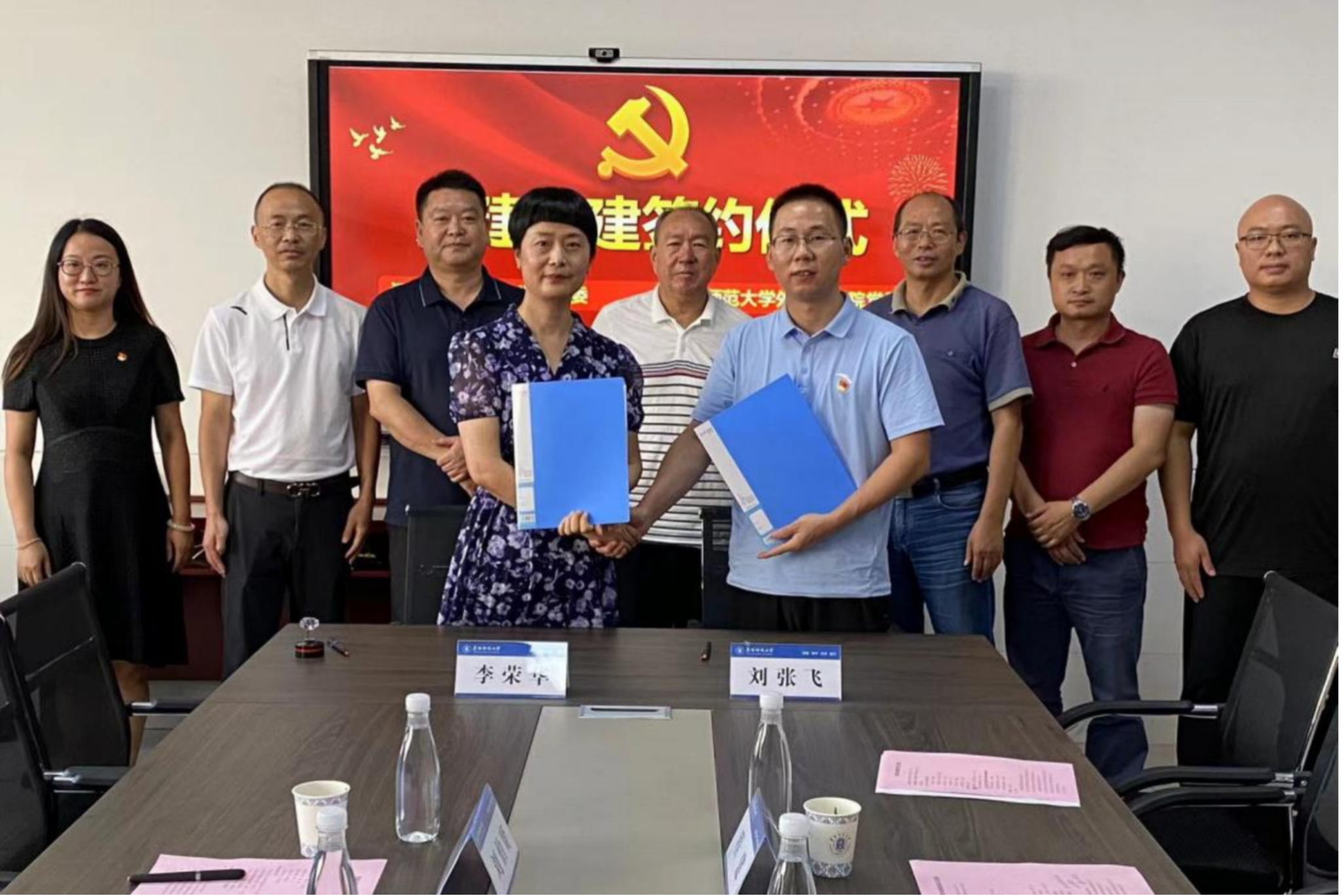 经过前期的充分沟通、平等协商,两个学院党委及各自所属的英语系党支部分别签署院(系)党建共建协议。与会人员就两院的基层党支部、共青团工作作了分享交流,并就合作共建的相关内容的落实落地进行了充分沟通,在定期交流互动、共同开展主题党日等方面达成共识。未来,两院将继续秉持“党建引领、共筑辉煌”的合作理念,不断创新党建工作模式,拓展合作领域,深化合作内涵,推动高等教育事业的繁荣发展。