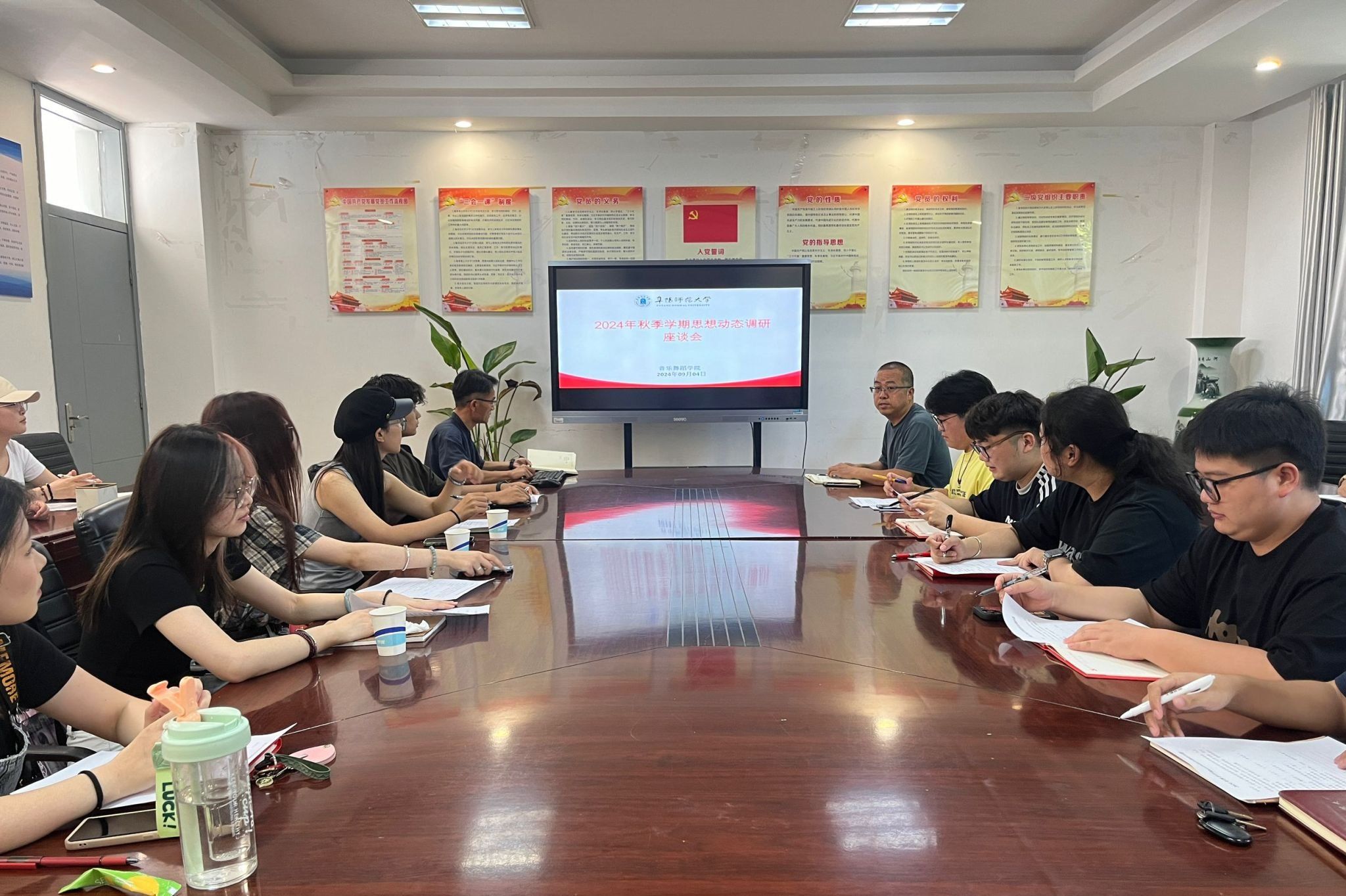 9月4日下午,音乐舞蹈学院在韶华楼203会议室召开秋季学期思想动态调研会,学院党委副书记马玉海和二十余名学生代表参会,会议由专职组织员余海涛主持。