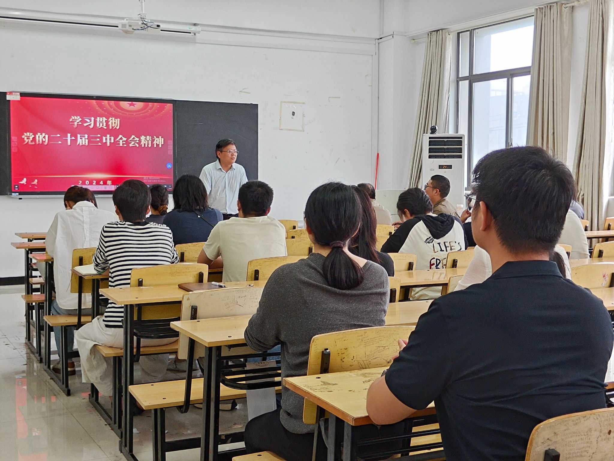 盛兴平从深刻把握领会党的二十届三中全会精神的重大历史意义、深入学习领会习近平总书记在全会上的重要讲话精神、全面准确理解《决定》提出的一系列重大改革重大举措、全力以赴抓好党的二十届三中全会精神贯彻落实等四个方面,对党的二十届三中全会精神作了全面宣讲。通过生动的案例、详实的数据以及深入浅出的讲解,让师生们深刻认识到党的二十届三中全会是在以中国式现代化全面推进强国建设、民族复兴伟业的关键时期召开的一次十分重要的会议。