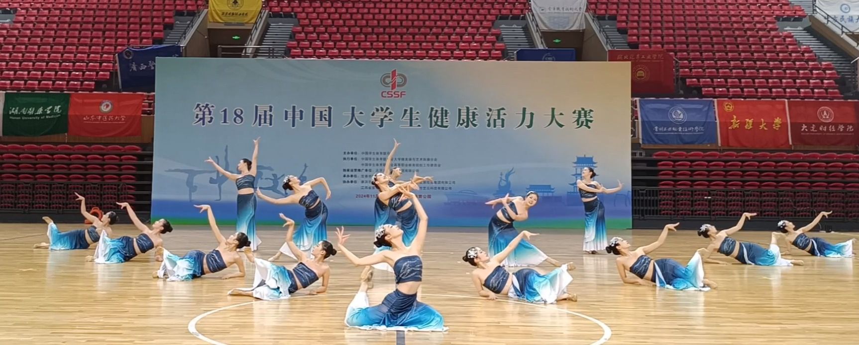 11月22日至27日,中国大学生健康活力大赛在江西宜春市举行,来自全国各地共30多所高校参赛队的近400名运动员参与本次比赛的角逐,我校中国风健身舞队在本次大赛中表现出色,充分展示了当代大学生的个人风采和团队精神,获得丙组高水平组团体总分第一名,丙组派对系列第一名,民族健身系列第二名,自选动作第二名,2022级张思雨、2023级刘丹阳、2022级范琳琳分别获得个人全能组第四、第五、第七名。