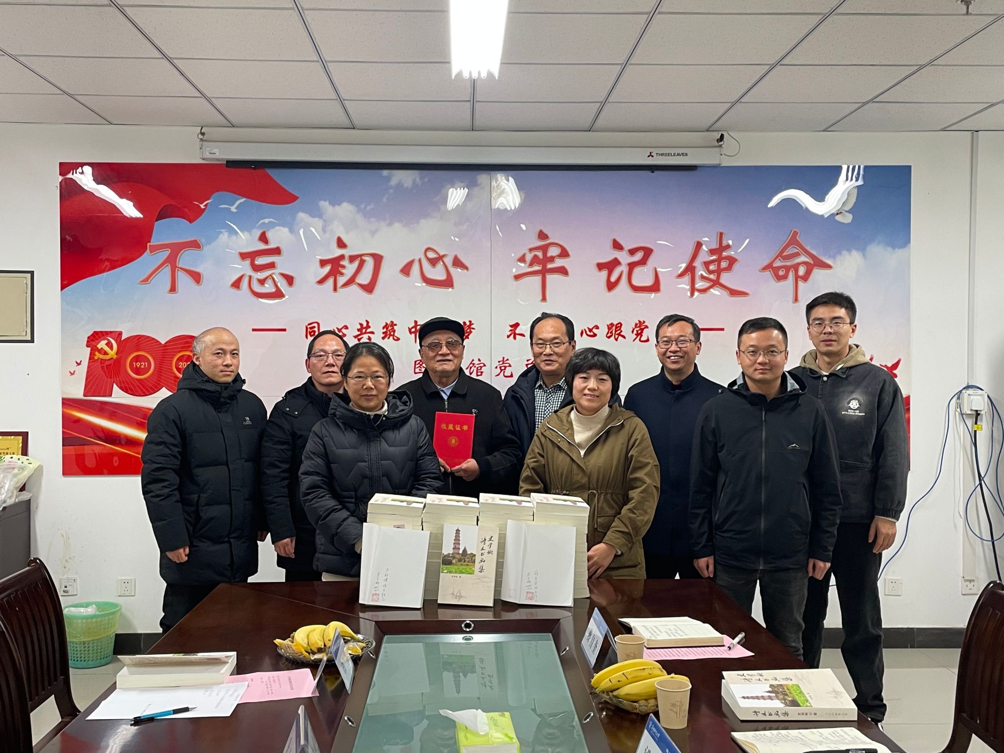 王根健代表图书馆接受了史学彬同志捐赠的图书,并为其颁发了捐赠证书。