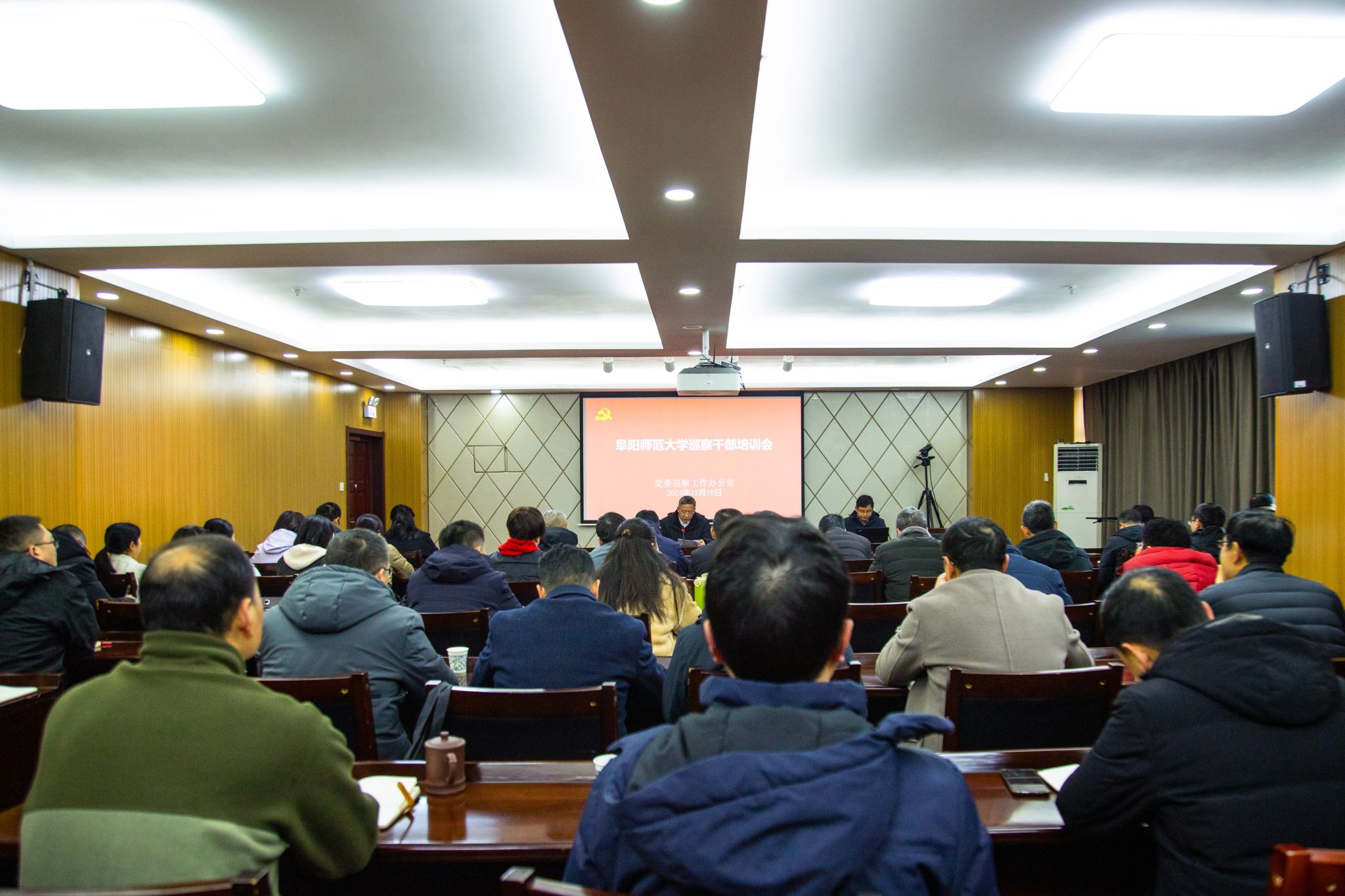 为深入学习贯彻新修订的《中国共产党巡视工作条例》,进一步提升学校专兼职巡察干部的政策水平和履职能力,推动校内巡察工作高质量发展,学校举办了2场巡察干部专题培训会,对我校巡察干部开展有针对性业务培训。12月18日,阜阳市纪委五室主任张锐、阜阳市委巡察办综合科科长丁超受邀来校进行巡察业务培训。学校各二级党组织副书记(纪委书记或纪检委员),党委组织部、纪委办公室、党委巡察工作办公室工作人员,巡察人才库干部接受培训。