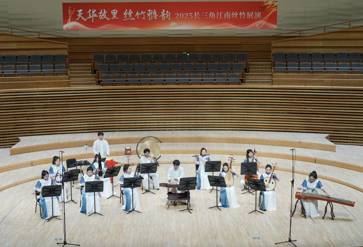1月11日、12日,以“天华故里 丝竹雅韵”为主题的2025长三角江南丝竹展演活动在江阴市音乐厅举行,音乐舞蹈学院颍淮之韵民族乐团作为非物文化遗产江南丝竹优秀传承团队入选此次活动,本次展演由江苏省音乐家协会、江阴市委宣传部、江阴市文体广电和旅游局、江阴市文学艺术界联合会联合举办,来自中央音乐学院生生丝竹乐团等长三角地区6个省市12支团队近200名民乐艺术家参加演出。