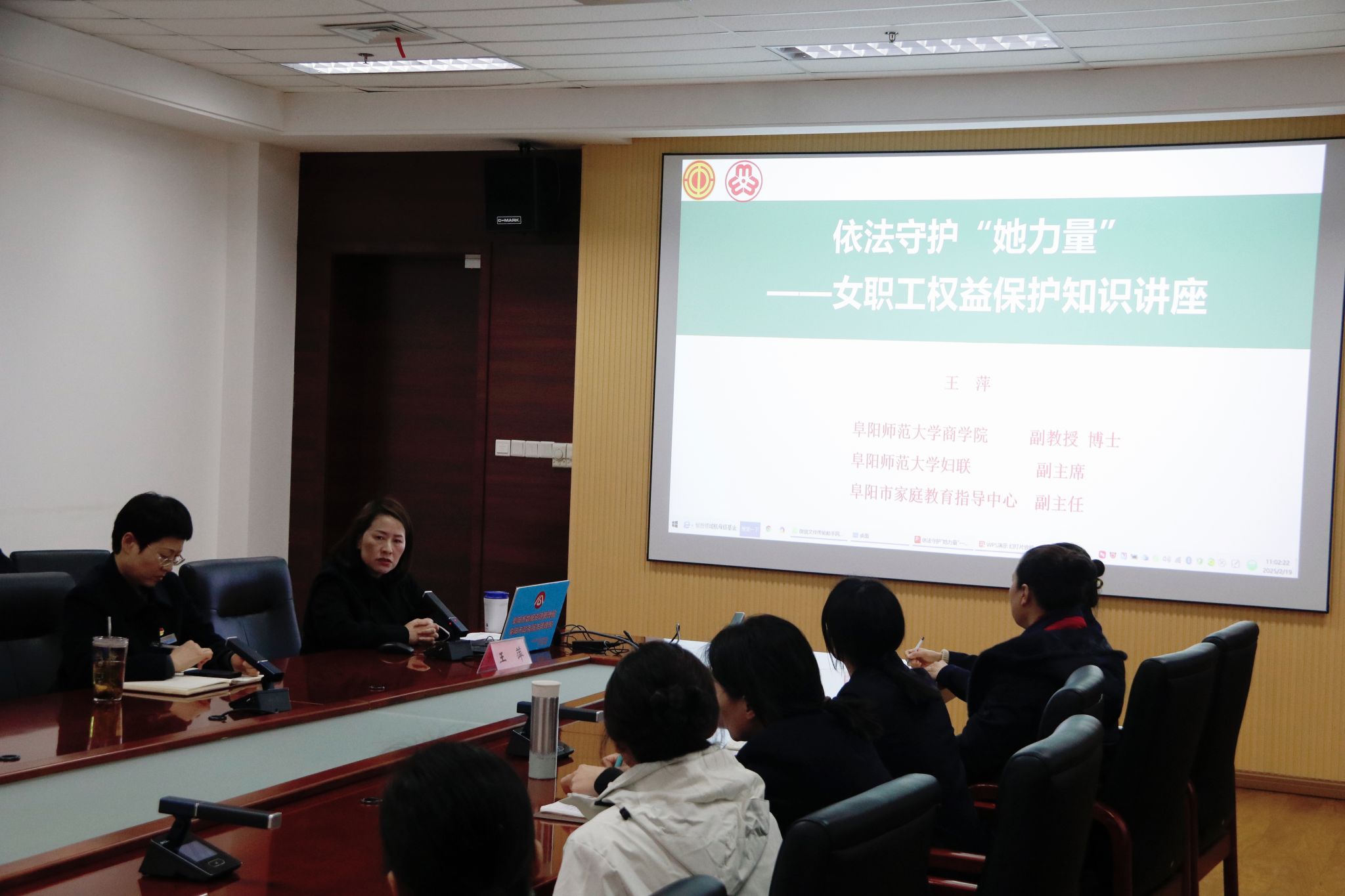 为迎接第115个“三八”国际劳动妇女节,进一步提升女职工权益保护意识,营造和谐稳定的劳动关系,3月6日下午,阜阳市总工会联合阜阳市妇联等多家单位,在阜阳市政务服务中心举办“皖工之约”职业女性大讲堂专题报告会。我校妇联副主席王萍应邀作专题报告。