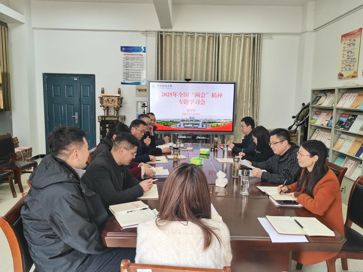 3月18日下午,商学院党委理论学习中心组召开2025年度第3次集中学习会,专题学习全国两会精神。学院党委委员、各党支部书记参加会议,会议由学院党委书记宋东锋主持。