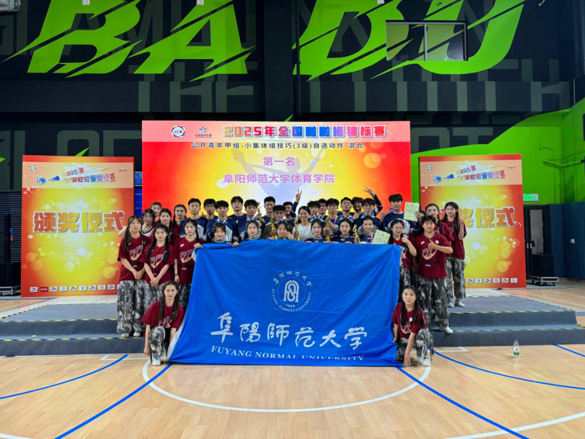 5月20日至24日,由国家体育总局体操运动管理中心主办的2025年全国啦啦操锦标赛在安徽合肥盛大启幕。作为国内啦啦操领域的顶级赛事,此次大赛吸引了来自全国32个省(自治区、直辖市)的近200支顶尖队伍、7300余名啦啦操爱好者同场竞技,堪称一场青春与激情的盛会。赛场上,我校学子以昂扬姿态亮剑竞技,凭借卓越表现斩获多项殊荣,共斩获2项冠军、2项亚军及1项季军,充分展现过硬专业技能与团队协作精神。在备受瞩目的集体技巧类项目中,由2023级表演专业程玉、闫雪婷等23名新生组建的女子团队,以行云流水的动作编排与零失误的完美配合,勇夺甲组大集体技巧自选项目全国冠军。同属2023级表演专业的杨应洁、毛小然等12名同学,凭借创新编排在甲组小集体组合技巧自选项目中摘得桂冠,实现技巧类项目双冠突破。混合编队组合同样表现亮眼。由2022级程政智、刘传等22人组成的跨年级团队,在甲组集体技巧自选项目中斩获全国第二名;2023级程玉、李玉茹带领的14人街舞团队,将现代街舞与传统技巧深度融合,斩获青年甲组小集体街舞自选项目全国第3名。此外,刘传、尚佳等5位同学在青年甲组小团体配合技巧项目中荣获全国第2名,实现梯队全面突破。