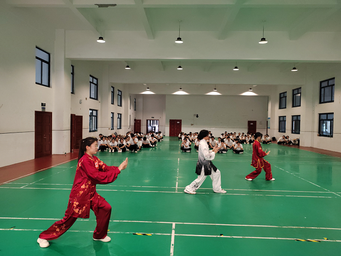 赛场上,身着统一服装的参赛选手们精神抖擞,伴随着悠扬古朴的乐曲,依次列队入场。一招一式,刚柔并济,如春蚕吐丝连绵不绝;举手投足,舒展大方,似白鹤亮翅气定神闲。各班级选手将太极的深厚底蕴与独特韵味展现得淋漓尽致,选手们神情专注,呼吸吐纳间尽显从容,动作如行云流水,整齐划一,展现了太极的和谐之美。