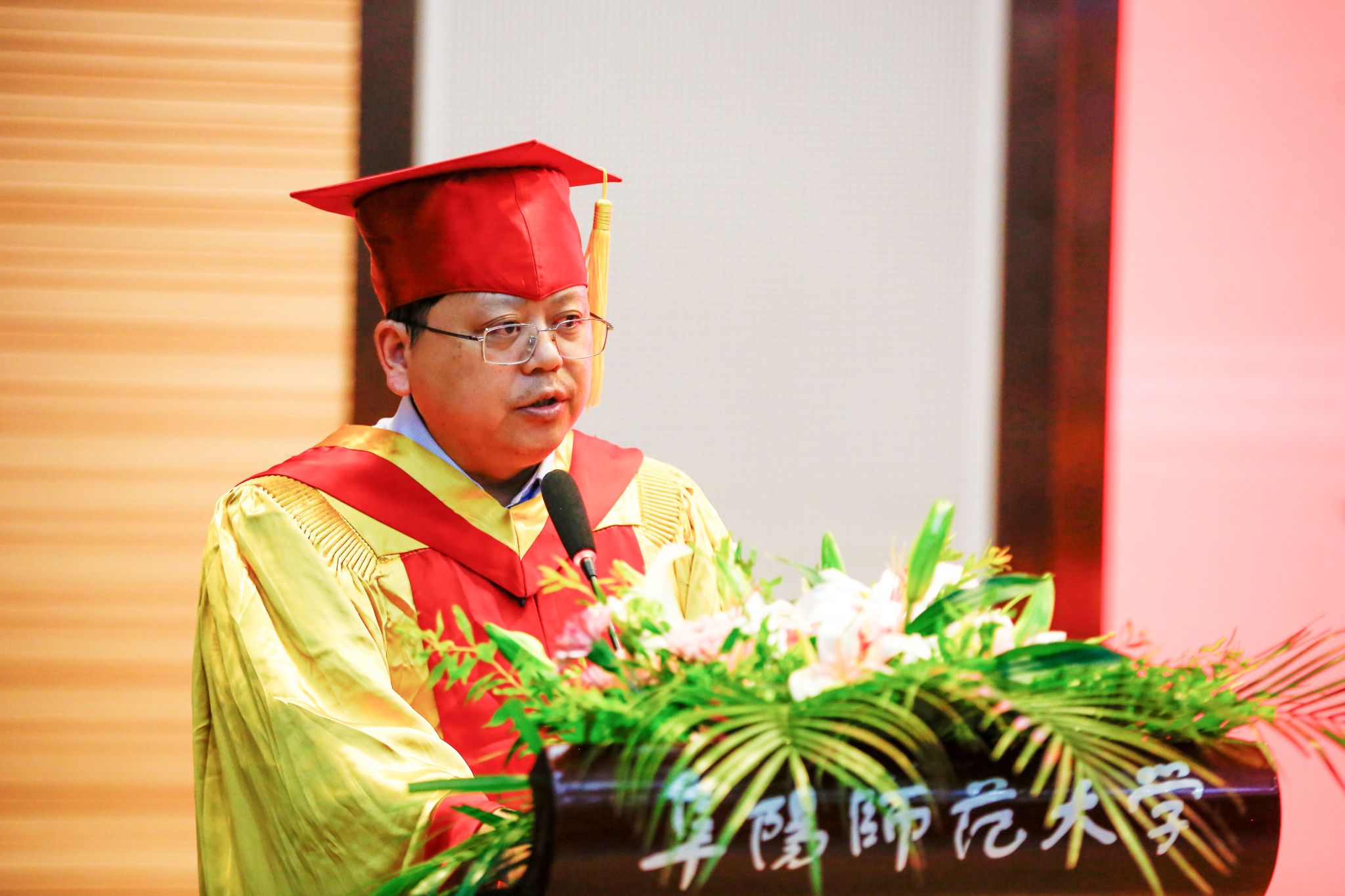 典礼在庄严的国歌中拉开帷幕,盛兴平总结和回顾了本届毕业生的总体情况,接着他结合数学定理,用数学名词寄语毕业生,希望同学们坚守公理规则,在有限的目标中追求无限的价值,正确理解直与曲,处理好曲和直、必然与或然的辩证关系,做好人生不等式,成就精彩人生。教师代表孙云霞也为毕业生送上祝福,愿毕业生永葆学术热忱,始终博采众长、始终勇攀高峰。毕业班辅导员代表王敏叮嘱毕业生,细数了千日来同窗的蜕变足迹,以独属辅导员的真挚勾勒着每一位奔赴前程的少年,回忆起师生间种种,哽咽中满是对学生的不舍与殷切嘱托。