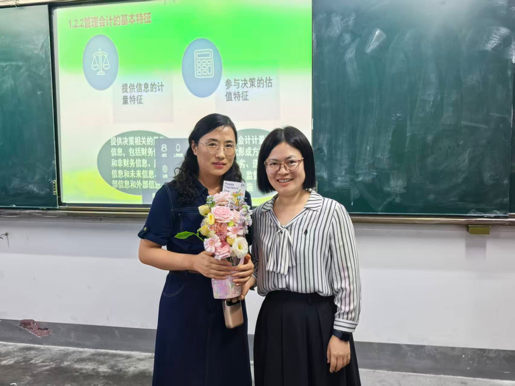 9月10日教师节当天,学院党委书记宋东锋、院长张雪梅与学生会骨干一起,将2025级新生们精心制作的花束逐一送往各教室,为当天有课的教师献上节日惊喜。“老师,祝您教师节快乐!”在教室门口,院领导将饱含心意的花束递到授课教师手中,详细询问课程进度与教学需求;与教师们亲切交流,感谢大家长期以来在教学科研与人才培养工作中的辛勤付出。收到鲜花的教师们脸上洋溢着喜悦,纷纷表示将以更饱满的热情投入到教学工作中,不辜负学生与学院的期待。院领导还同步开展了推门听课活动,通过全程旁听、记录教学环节、观察学生课堂反应等方式,深入了解教师授课内容设计、教学方法运用及课堂互动效果。